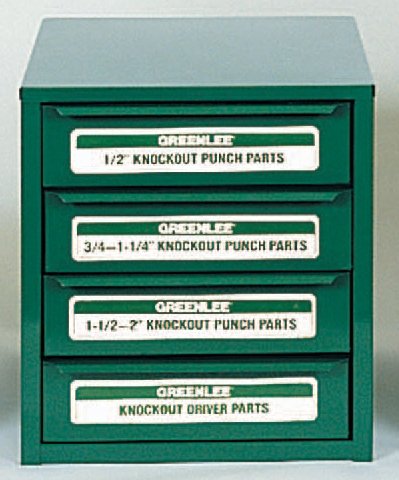 14" High Metal Cabinet with Knockout Punch AssortmentFrom Greenlee, this storage chest can hold items small and large, and safely locks all items inside.Features:Maximum Cutting Capacity of 8 Gauge Conduit14" High x 13" Wide x 14-3/4" Deep4 Drawers1/2" to 2" Assortment of PunchesFor more than 140 years, Greenlee has been a provider of quality tools to the woodworking industry and, for over 70 years, to the electrical industry as well. Over 20 years ago, Greenlee made a commitment to the high technology necessary to keep pace with the changing needs of their customers. Proof of that commitment is in the modern facilities, state-of-the-art production equipment, and enhanced quality assurance programs which comprise the Greenlee way of doing business today.